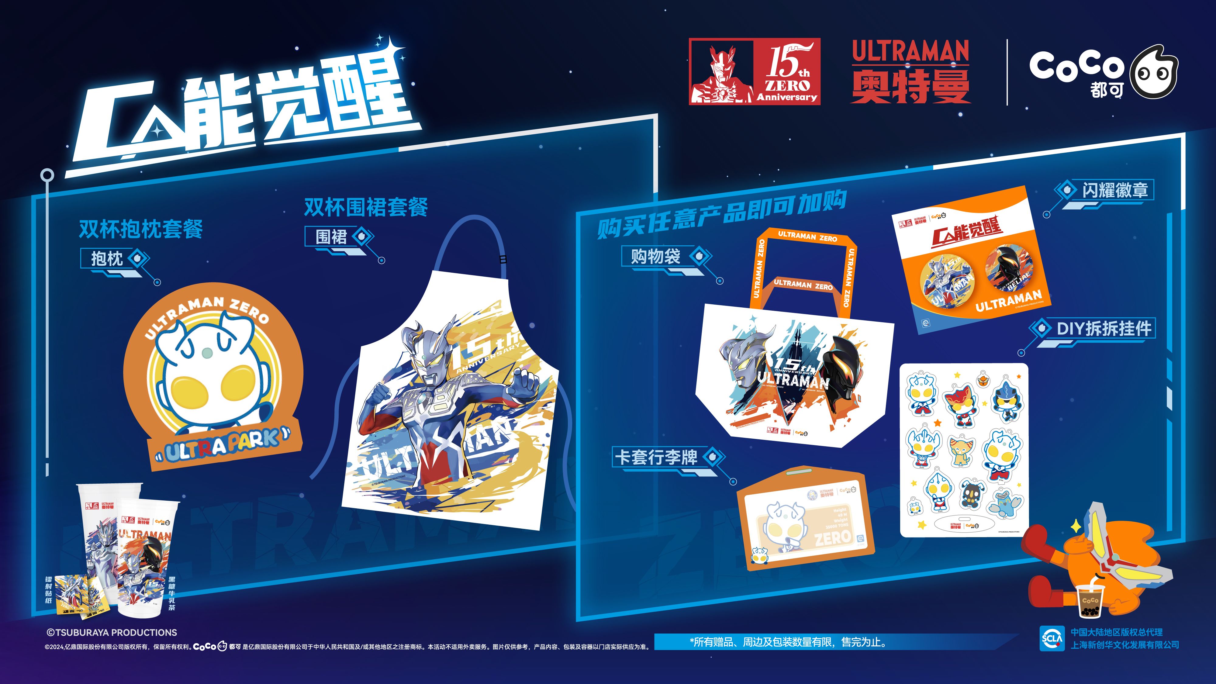 此次合作正值秋冬季节黑糖饮品消费旺季,CoCo都可巧妙地将奥特曼"光之能量"的内核与品牌主打的"瀑布黑糖珍珠"产品特色相结合,实现了品牌年轻化与季节性营销的双重目标。项目自2024年10月18日起在全国CoCo都可门店同步上线,推出了包括联名饮品、限量套餐和加价购周边在内的丰富活动内容。联名周边不光包括 联名围裙、抱枕、卡套行李牌等日常生活用品的使用周边,也包括闪耀徽章、DIY拆拆挂件等具有收藏价值的收藏周边。特别值得一提的是,此次联名还特别庆祝了赛罗奥特曼15周年,为活动增添了更多纪念意义。