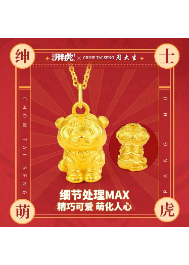 《我不是胖虎》与周大生虎年系列合作,推出包括胖虎和小虎两个形象的转运珠、金项链挂坠系列