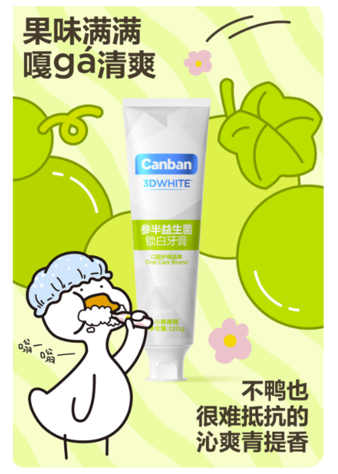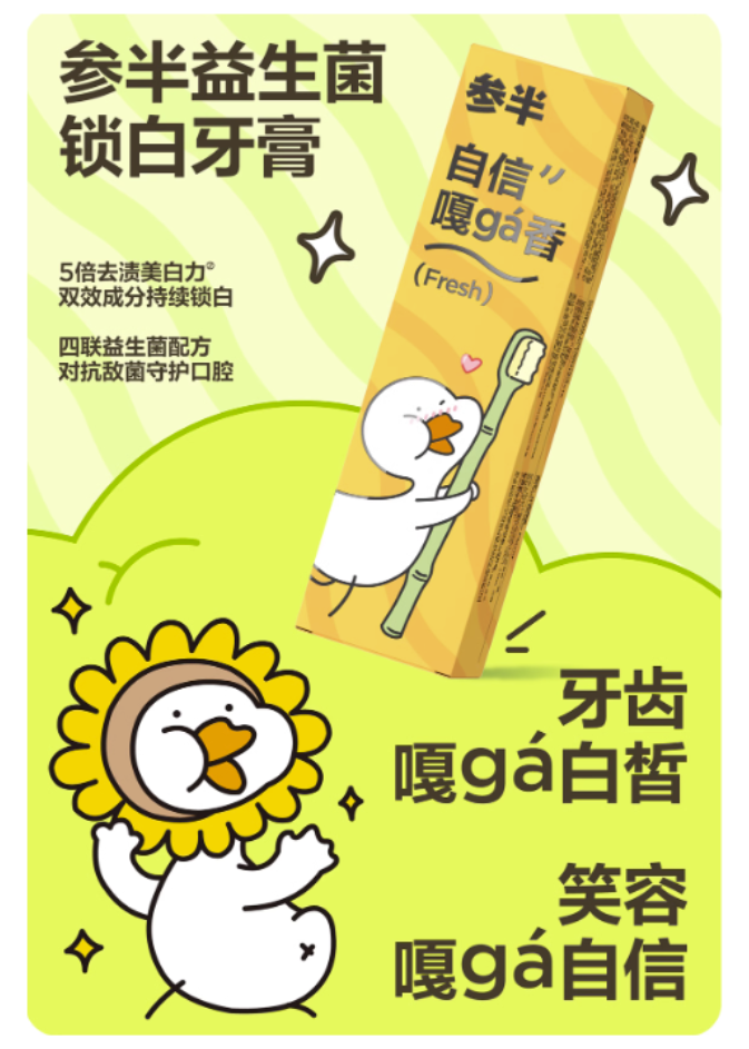 不鸭×参半联名端午礼盒,清新在线,“鸭”力下线,礼盒内不仅有【蛋型】益生菌清新便捷漱口水、牙膏,还有不鸭定制毛巾,以及嘎ga好吃的粽子!快来和不鸭一起,享受美食的同时保护口腔健康,刷出白白牙齿~