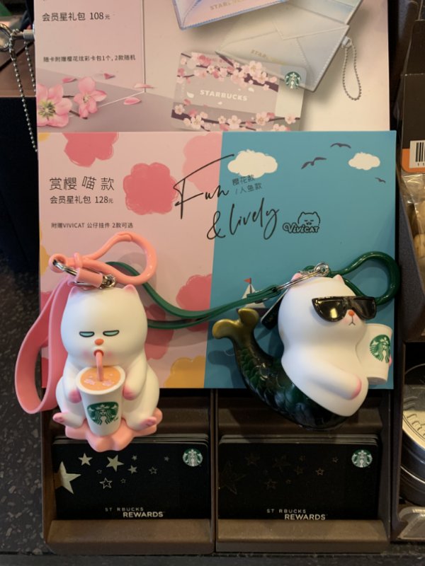 2020年3月24日,ViViCat联合星巴克推出“ViViCat樱花和美人鱼系列”星礼卡挂件,让这股“懒萌喵星人”的风潮和现代人的生活方式完美结合。软萌美女兔~傲娇大佬喵~粉嫩嫩的两只,为春天增添了一丝新的韵味。