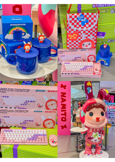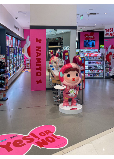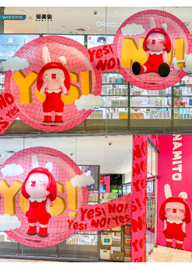 潮流艺术IP奈美兔与知名美妆零售巨头屈臣氏携手推出一系列通勤好物,已在全国2000家屈臣氏线下门店和屈臣氏微信官方商城惊喜发售。 2023年6月30日-7月26日,屈臣氏 X 奈美兔IP主题店登陆广州天环广场屈臣氏门店,整个门店的装饰风格都是以萌趣十足的奈美兔形象及主色调为主,营造出别具风格的潮流感。同时,活动亦邀请时尚类KOC进行探店打卡,并发布在小红书、抖音和大众点评,收获网友们的喜爱与一致好评。