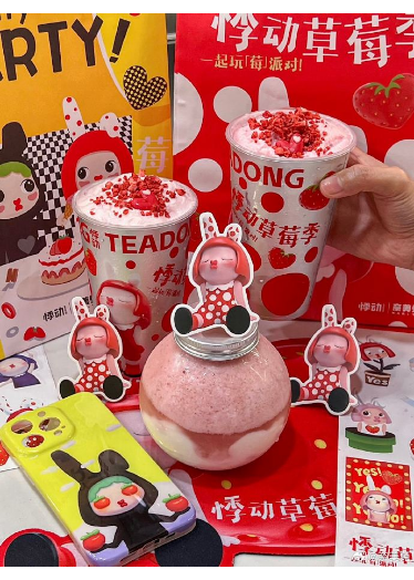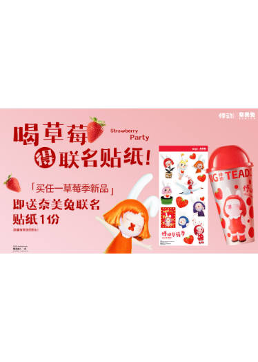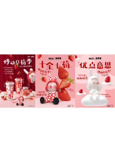 悸动烧仙草携手奈美兔以礼赠推广授权模式进行合作,推出了浮云生酪草莓、浮云兰香草莓、草莓优酪心球杯等草莓系列联名茶饮新品,幸福「莓」满,一口「莓」烦恼 。除此以外,还推出奈美兔莓莓吸管签、奈美兔莓莓贴纸、奈美兔联名双杯袋、奈美兔联名鼠标垫等超多可爱又好玩的正版周边。新品在全国1400多家门店同步上线,门店覆盖大陆地区上海、杭州、南京等多个城市,吸引了很多年轻一代的消费群体。同时在抖音、小红书、公众号、视频号等多个新媒体平台上发起#悸动草莓季#、#悸动x奈美兔#等话题并联动众多达人发布种草推广内容,总曝光量超过千万。