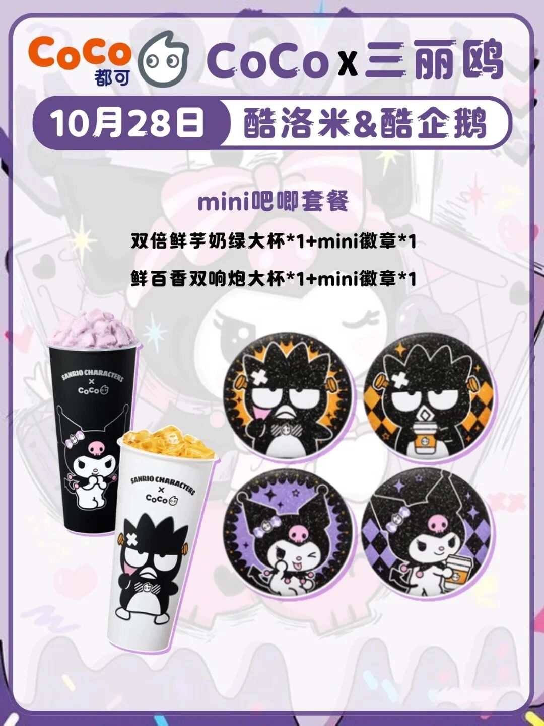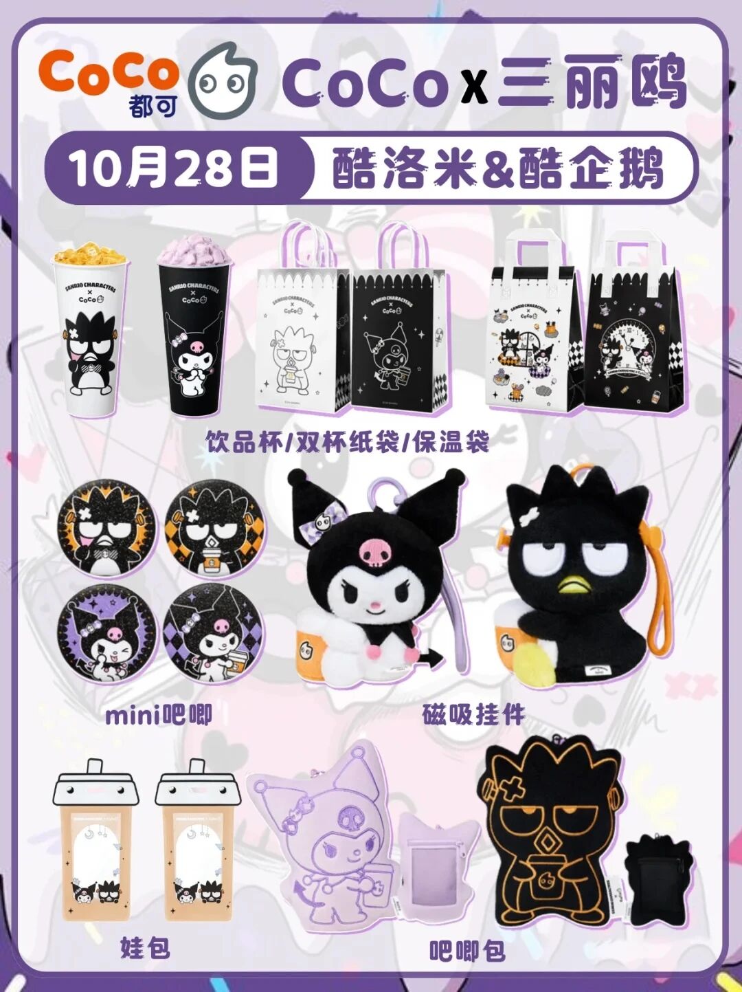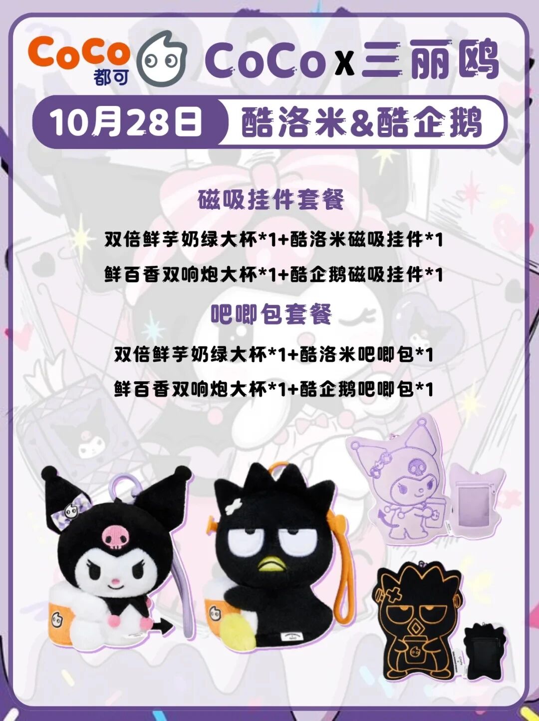 CoCo x 三丽鸥将在10月28日推出新联名!这次是三丽鸥家族的酷企鹅和库洛米单独出道,主打酷炫风,两个IP的主题包装,搭配同款磁吸挂件,还有同款吧唧,直击三丽鸥粉丝为偶像打call心理~