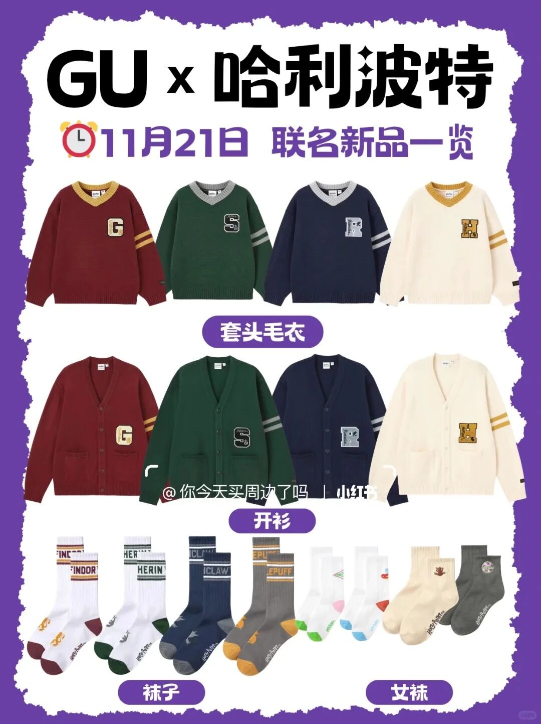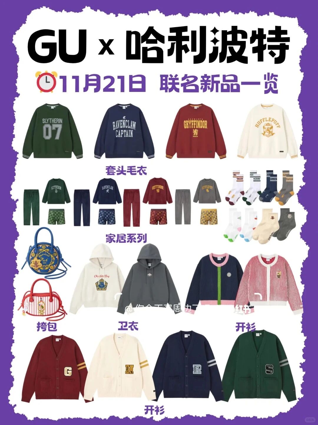 GU x 哈利波特联名系列将于11月21日上线!深挖IP内核,主打英伦学院风,4大学院主题色+魔法元素,为粉丝提供丰富选择,尽情挑选自己心爱主角的应援色!