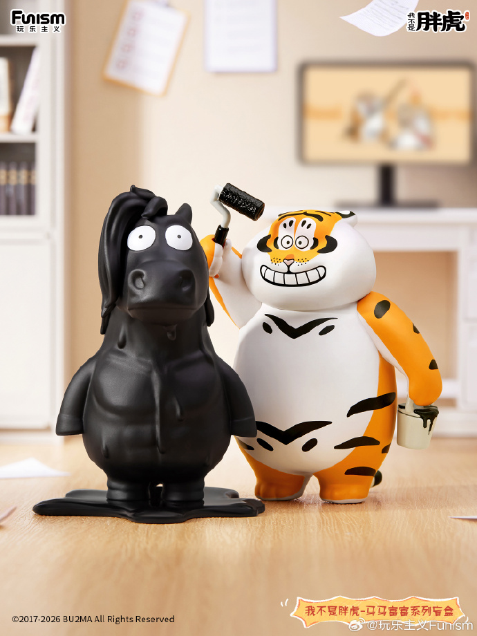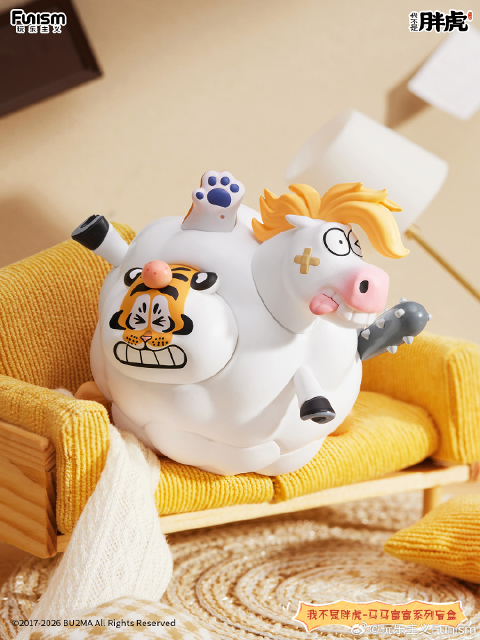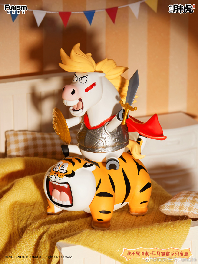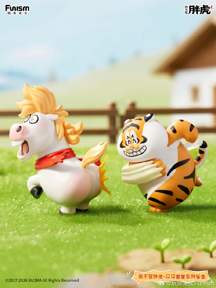 1月9日玩乐主义携手我不是胖虎打造联名盲盒系列,在马年来临之际,推出胖虎新搭档——白富马上线。它的人设是拥有时不时爆金币的天赋技能,传说有一天白富马无意中救了财神的命,幸运得到了无限爆金币的能力。有的人喜欢他的单纯,有的人欺负他的傻,不管别人怎么对他,他始终好善乐施,以助人为己任。这一次,憨态可爱的白富马与呆萌胖虎组队,一起打造“马马富富”组合,以立马有钱、腰马合一、一团乱马等谐音祝福、搞笑话题为盲盒提升趣味性和收藏性。