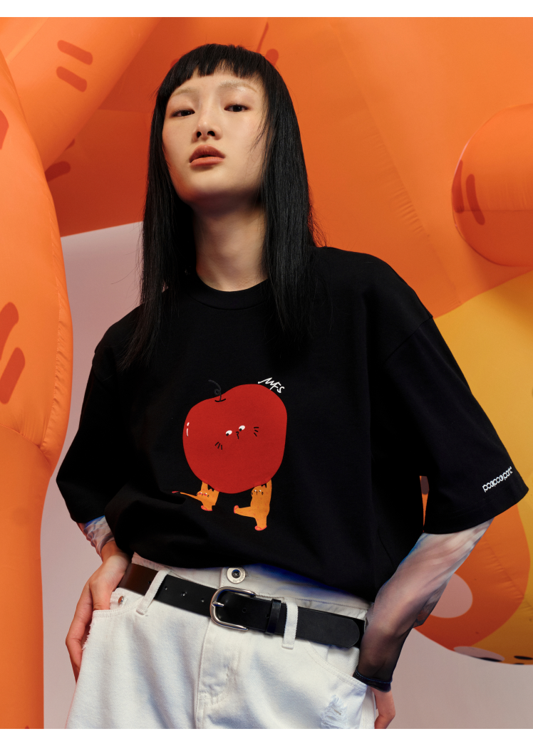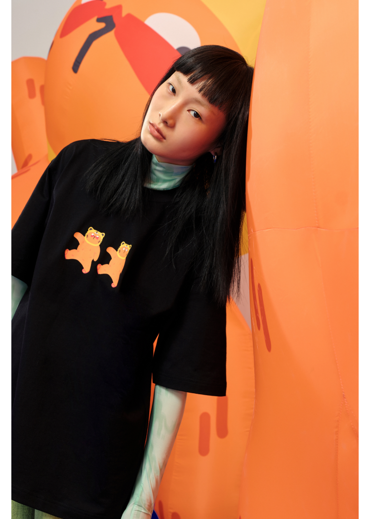 Marisfrolg.Su与橘噗噗联名合作的夏日服饰系列,简单而不失巧思的设计与充满活力的作品图案结合。借助橘噗噗系列作品中的创意元素做出有趣的动图,并在视觉拍摄中制作了大型橘噗噗充气装置,营造极佳的视觉效果。充分体现此次联名的趣味、可爱、治愈,让人眼前一亮。