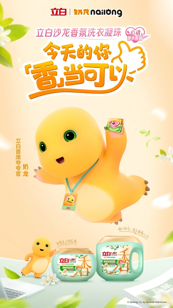 奶龙化身立白首席夸夸官,与立白携手推出联名洗衣凝珠。这一次,奶龙“温暖治愈”的形象与立白的香氛洗衣凝珠形成巧妙联系,特别推出10款立白专属职场夸夸表情包,给日常生活注入正能量。双方通过联名产品与整合营销,成功吸引大量年轻消费群体,为传统洗护品牌注入新动能。