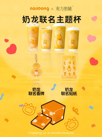 奶龙与东方墨兰的首次跨界合作,东方墨兰将奶龙治愈可爱的形象特质融入奶茶杯的设计之中,依托奶龙在年轻粉丝群体中的影响力与号召力,成功撬动大批年轻消费群体的关注,不仅为线下门店带来了可观的客流量增长,更高效地完成了一次目标受众年龄层的下探。