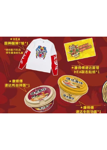 国潮有内核,国粹醒狮,掀起有料的东方正当食。“潮”,每个人都有自己的定义;它,可以是重塑经典的再现,可以是打破常规的自我表达;But,引领风潮的底气是要有料。HEA x 康师傅速达面馆一起破圈出味,跨界联合,让你有颜“有味。”